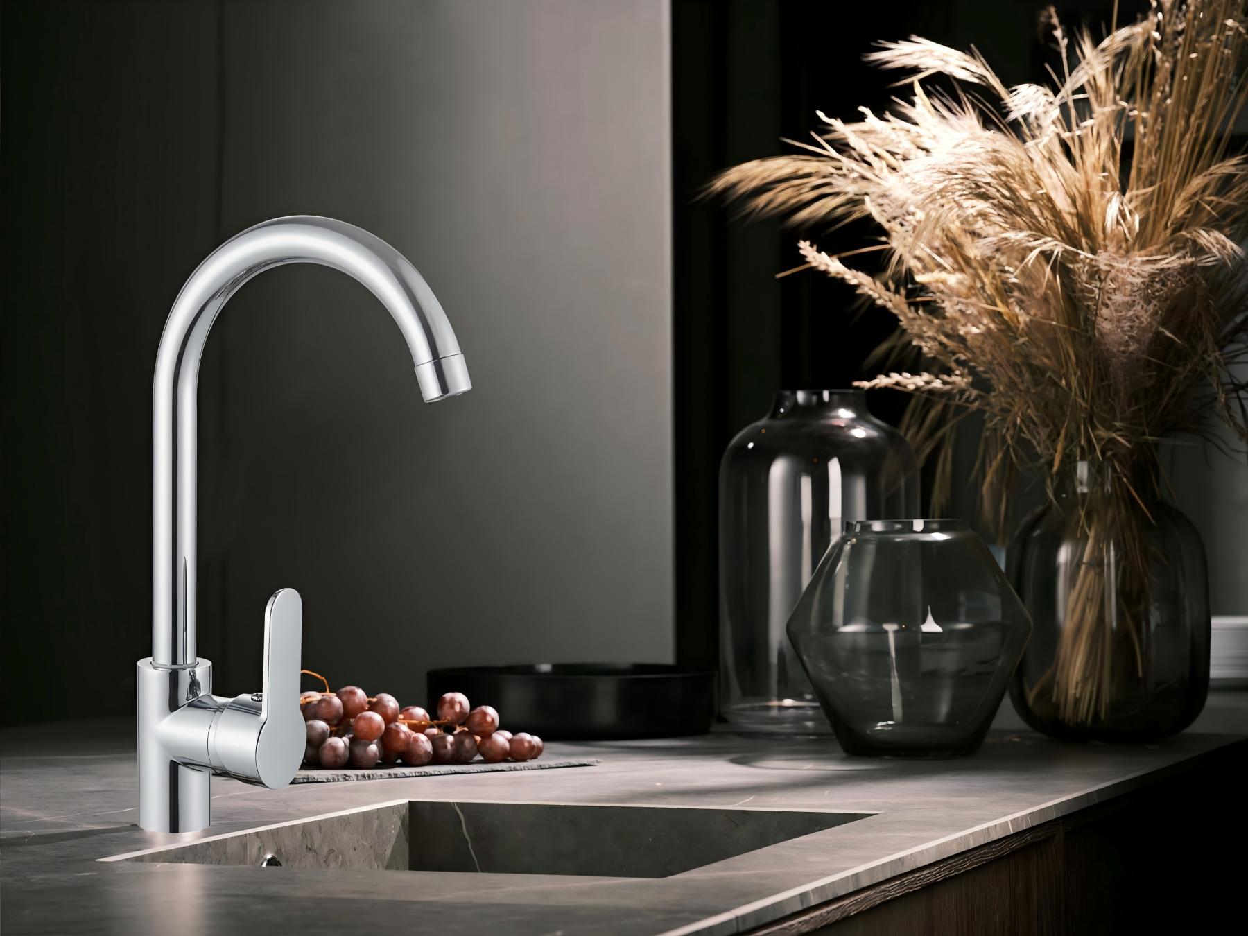 2. ハイベンド吐水口は360°回転に対応し、シンクエリア全体をカバーします。